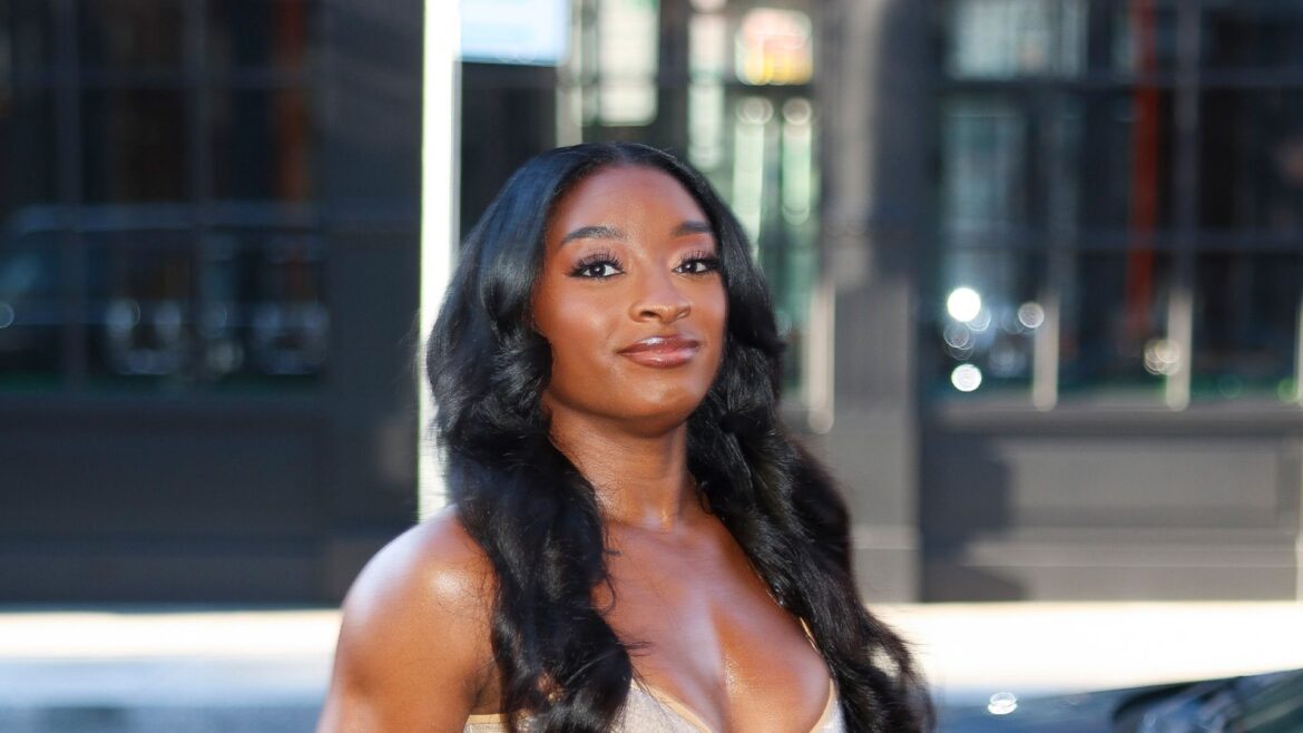 Simone Biles steigt aus und trägt die 90er-Jahre-Hochsteckfrisur von Pamela Anderson